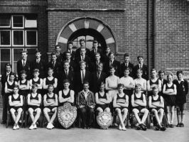 Back row: Spok(?), Mankman(?), ?, White, Samson, Knight, ?, Kettle, ?,?, Bratby. Middle row: Mr Hobson, Finch, ?, Barr, Taylor, ?, Hiller, ? Gallagher, ?,?, Webb Front row: Butterfield, Davis, ?, Honer, ?, ?, ?, Perrett, Dawkins, Eales.