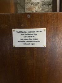 ”The restorer has recently (February 2023) completed work to incorporate the largest of the organ’s pipes (the Compton Polyphone which produces a very low note providing a bass sound) into All Saints Cathedral, Nairobi, Kenya as part of a full restoration of the organ. At the Association’s request, the restorer has placed a plaque on the housing surrounding the pipe reading ‘The Compton polyphone pipe on this organ was originally part of the World War Memorial Compton organ at the Southern Grammar School for Boys, Portsmouth, England’. See the image below - also the organ stop number ‘Contra Bourdon 32’ which is the one associated with the polyphone pipe.