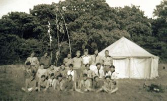 Each Summer there was a week long camp. In 1957 this was located at Fittleworth, near Petworth in Sussex. This camp was 'basic', meaning we arrived at an open field with all our kit and equipment. Cooking, sleeping and toilet arrangements were all down to us, no brick build shower block on site but hand dug latrines. We had a daily rota of responsibilities for provisioning and cooking. Fetching milk from the farm house about half a mile away was no chore when it was rewarded with a bacon sandwich from the farmer's wife. On the other hand twenty four scouts do need quite a lot of water each day so water carrying was more of a chore but the stand pipe was only in the next field. One small regret was that the field with the stand pipe in was designated for use by Girl Guides - it was unoccupied during our stay but began to fill up as we were departing, perhaps they had been warned!