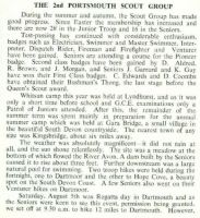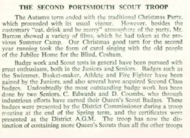 In inter-troop competitions both within Portsmouth and including Hampshire as a whole, the troop seemed able to hold its own usually finishing near or at the top. Although, much to my embarrassment, I remember one particular swimming gala when I was swimming the 100 or 200 Breaststroke. At the first turn I was in the lead and perhaps the excitement got to me because I swam the next length in Front Crawl. It wasn't the kind of 'cheating' one could hide and needless to say I was disqualified from the race.