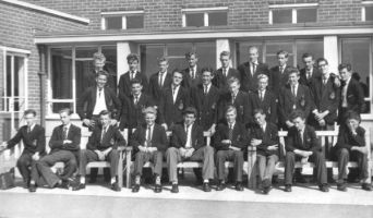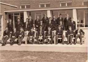 Form photo - about 1959 1st Row: Mace, Stevenson, Dave Workman, Bob Francis, "Jock" Garrard, Mr J. Carrick, Thomson, Lee, Paul Hibberd, "Dickie" Bird, Davis. 2nd Row: Pearson, Malc Howatt, Nuttall, Colin Fisher, Mike Shea, Frostick, Upfield, Bartlett, Tony Simmonds, Christopher, Maddison, Morgan 3rd Row: Rob Carter, Trevor Warmington, Lyons, Brooks, Harding, Colin Buckland, Steve Wanhill, Frank Edgeller, Terry Unwin, Lewis
