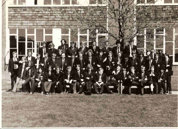 Back Row L-R Malcolm Willis, Philip Ingle, Russel Wanhill, ?, John (Jim) Liles, Martin Jeffery, French Exchange student, Derek Williams, Robert Tooze, John Ayling