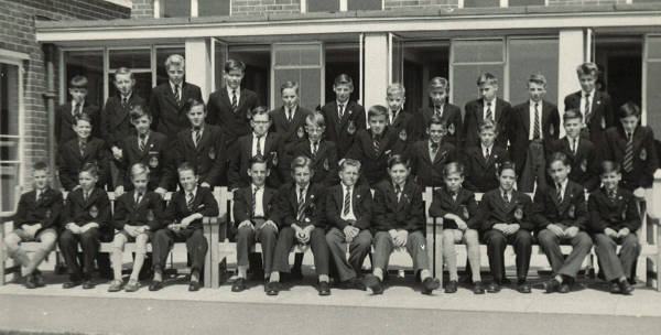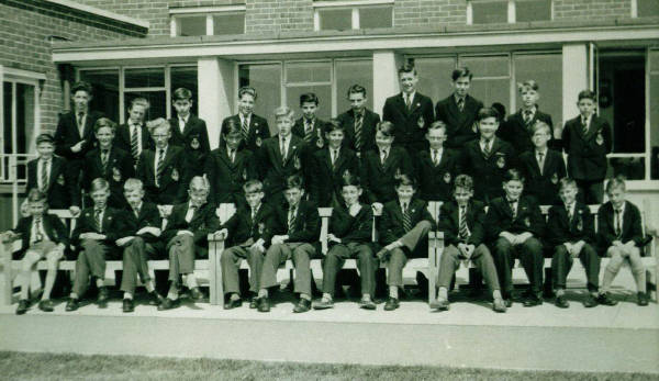 2nd or 3rd form about 1959/60. Back row l/r Taylor (now David Calder - the TV actor), Thorne, Francis, Beuzeval, Reynolds, Jenner, Higgins, Broomfield, Bray, Fullalove.