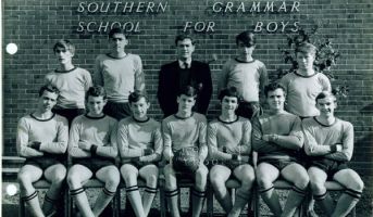 Standing L to R: Can't recall master's name I think he was a PE assistant????, Brian Hirschfield, me, Dave Sweatman, Rich Chandler, Mick Darragh, Steve Feast